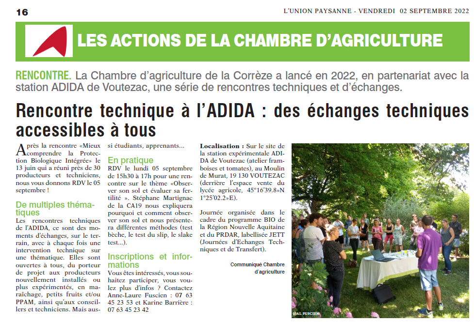 Un nouveau cap pour la station expérimentale de l’ADIDA Voutezac !